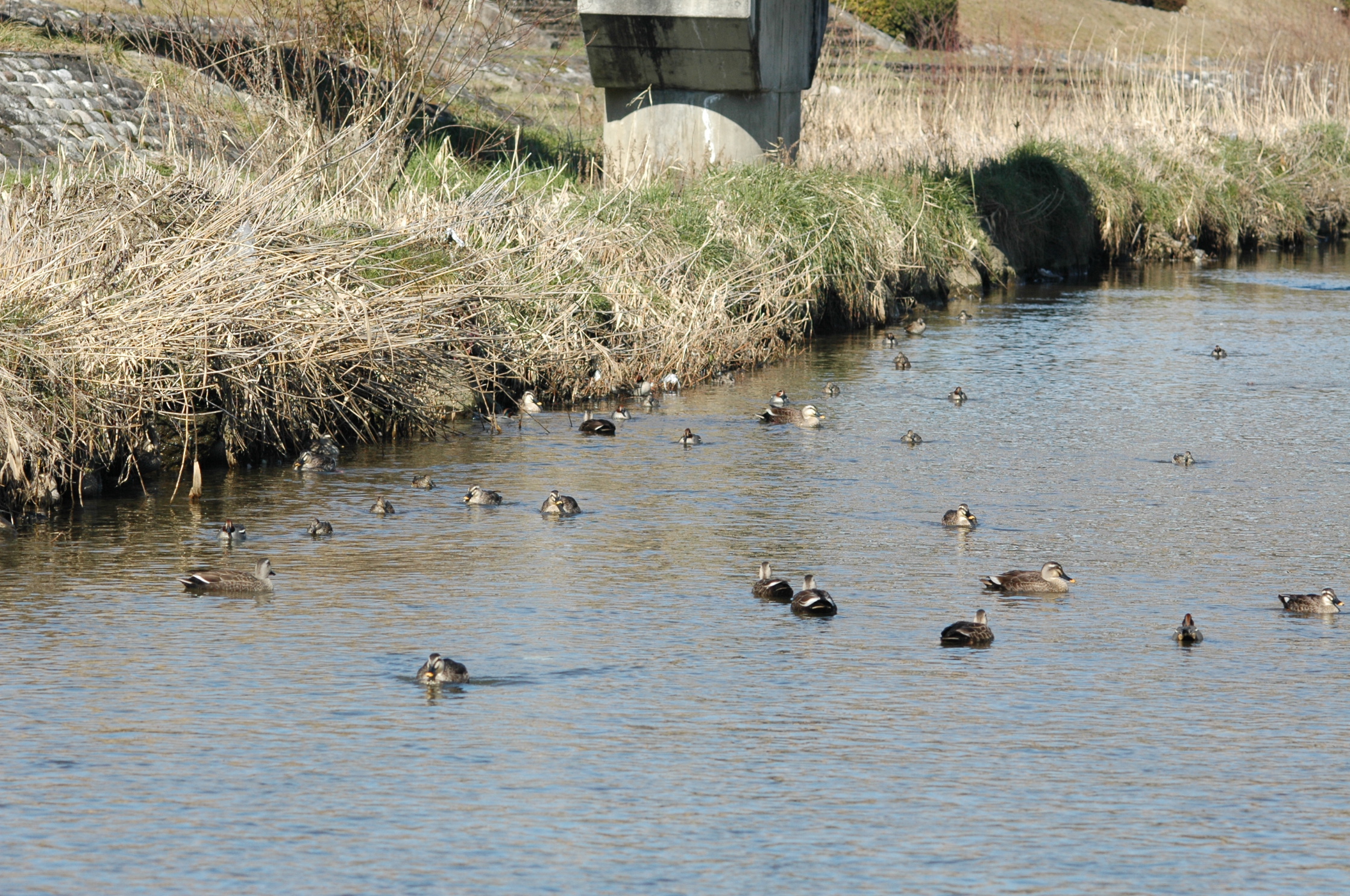 富山市中心部を流れる、いたち川。「ガーガー」と聞こえてきたと思ったら、カモがたくさん、お父さんカモ、お母さんカモに、ぴったりくっついて赤ちゃんカモが一生懸命に、泳いでました。動物って、どんな子育て方針なのか・・・・。
