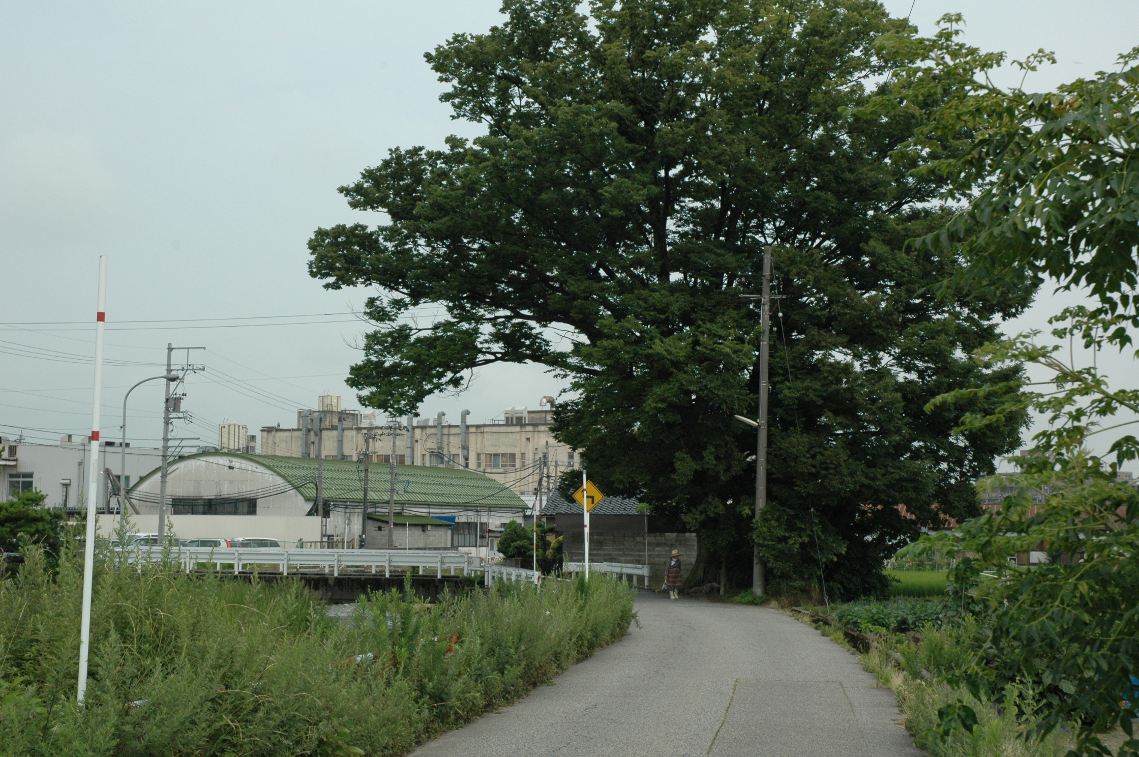 富山市、いたち川沿いを散歩すれば、大きな欅の木がある。