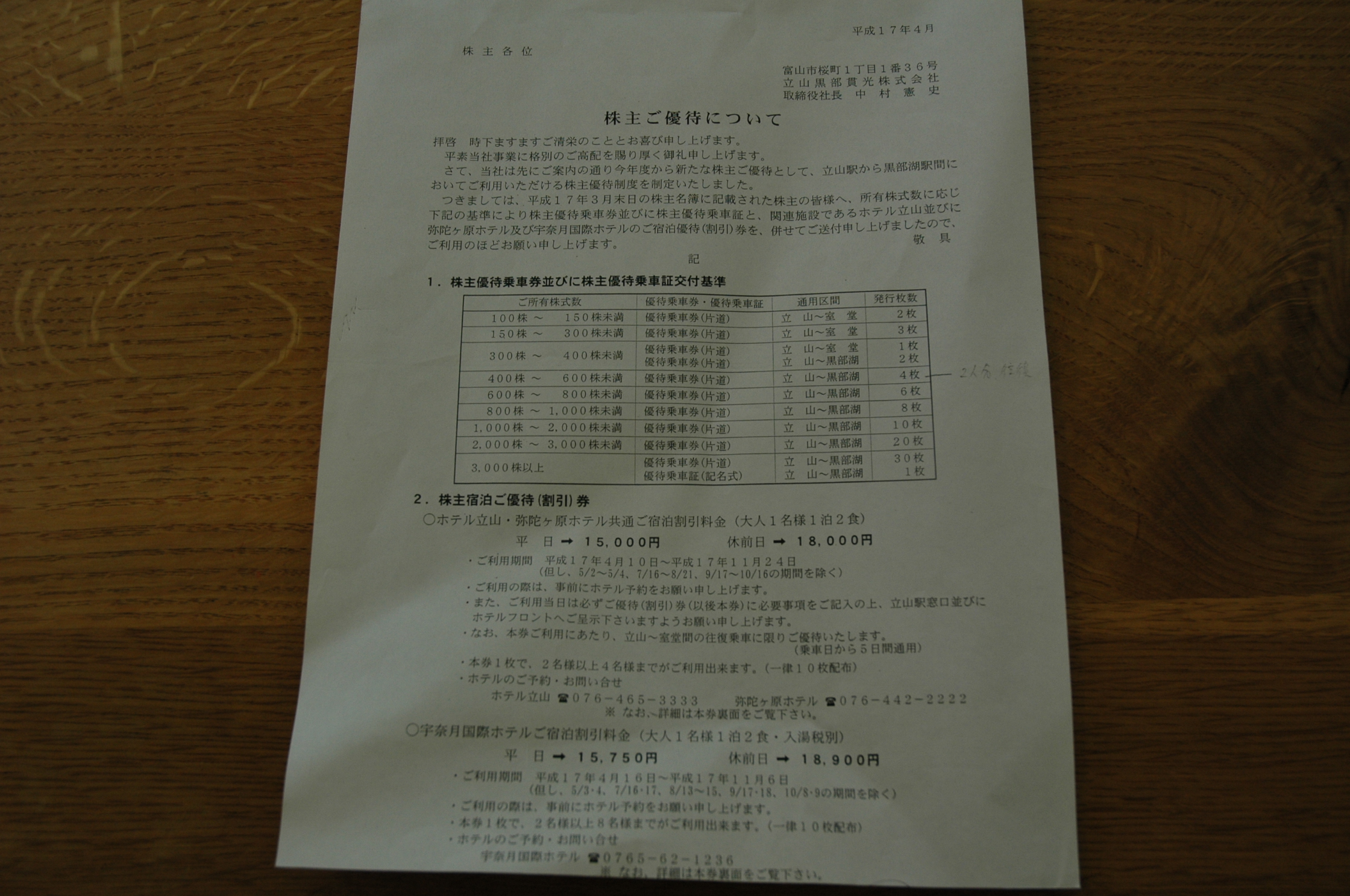 その会社の株主優待は、立山〜室堂 立山〜黒部湖の